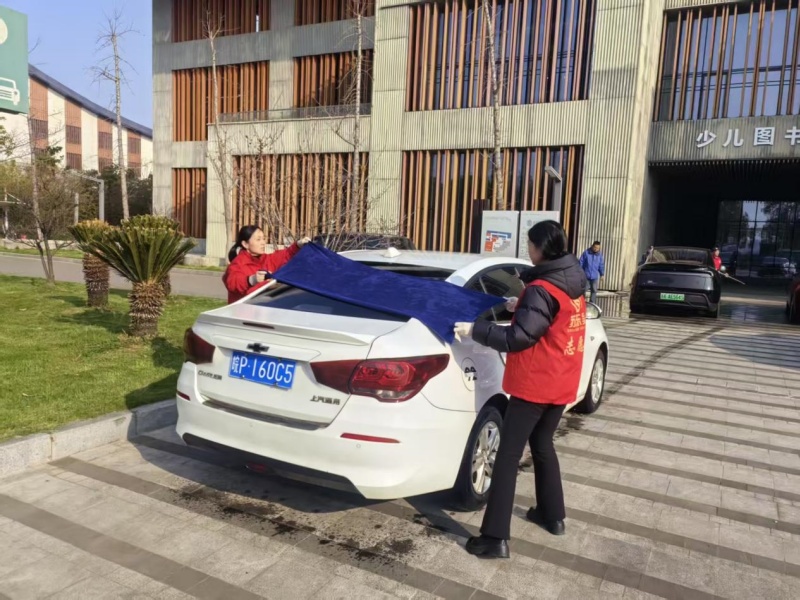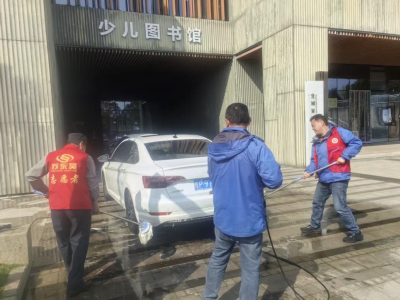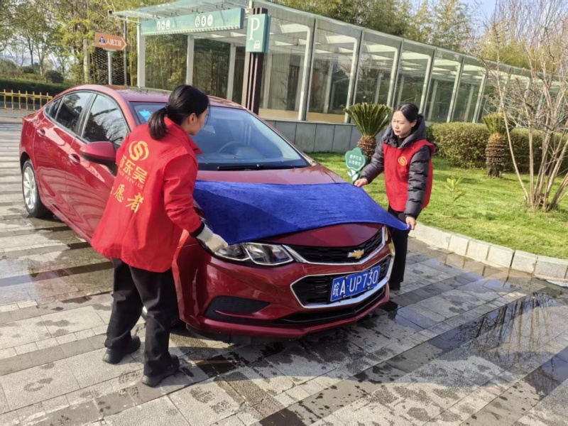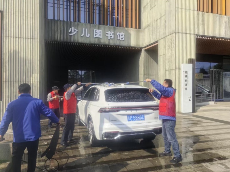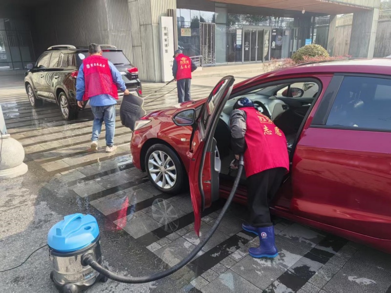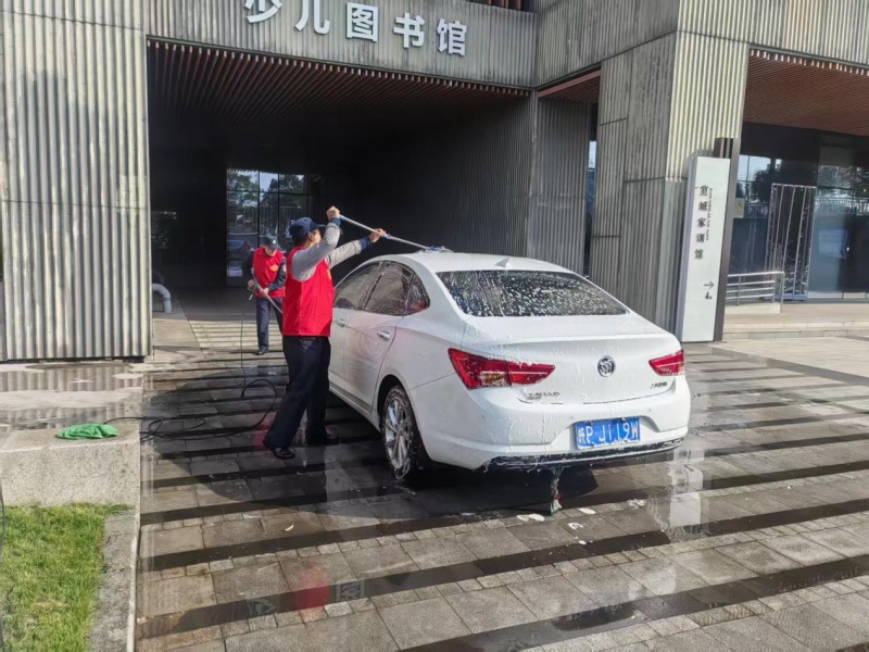 活动前,项目团队精心筹备、周密部署,结合三馆项目工作实际与业主实际需求,定制了专属的志愿服务内容。场馆内,志愿者们统一着装、分工协作,有序开展免费洗车服务:清洗车辆外观、擦拭车窗、清理内饰,细致处理车身污渍与边角灰尘,让一辆辆车辆焕然一新,切实解决了业主工作人员日常出行的小困扰。