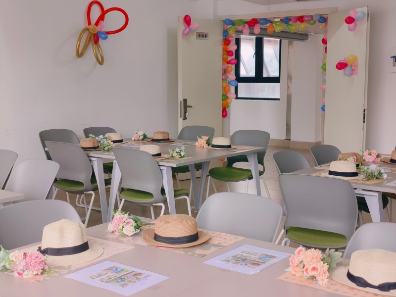 为让活动兼具仪式感与氛围感,项目部工作人员提前到场精心布置,手绘主题板报、规整摆放花艺材料,各式花艺礼帽、缤纷花束与剪刀、胶水等工具整齐陈列于桌,春日的芬芳在现场悄然弥漫,温馨雅致的节日氛围扑面而来,静待师生们赴约体验。