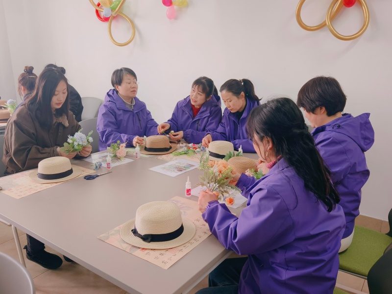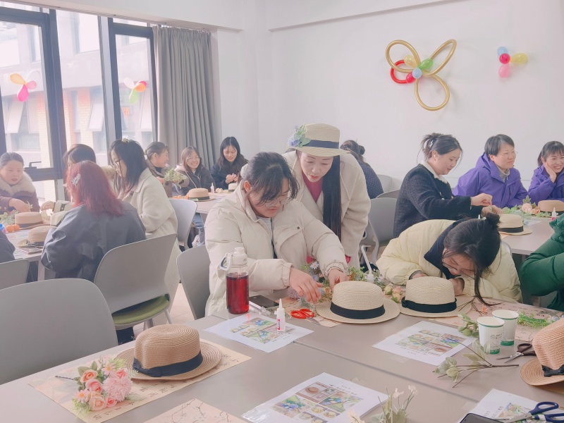当一件件精巧的簪花礼帽作品完成,师生们迫不及待地戴上亲手制作的成果,或手持礼帽,在活动打卡点前定格春日美好。镜头之中,她们笑容灿烂、神采飞扬,或优雅端庄,或活泼灵动,每一个瞬间都洋溢着节日的喜悦,每一张笑颜都是对巾帼芳华最美的诠释。“亲手做的礼帽特别有意义,这份成就感是买来的礼物比不了的。”一位老师捧着自己的作品,满是感慨。活动最后,全体参与人员手持簪花礼帽合影留念,将这份专属于春日的浪漫、对女性的尊崇永久定格。