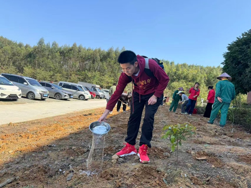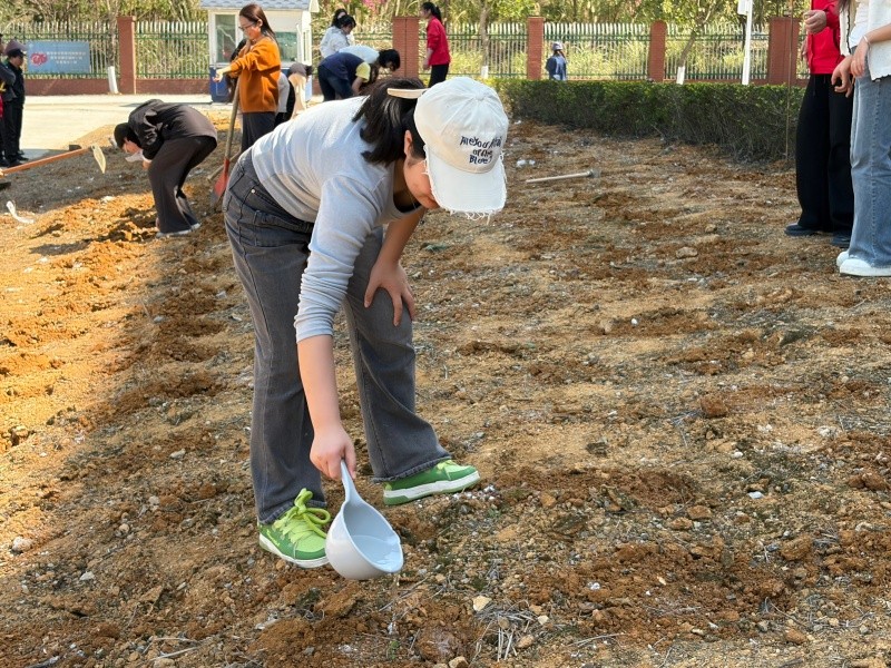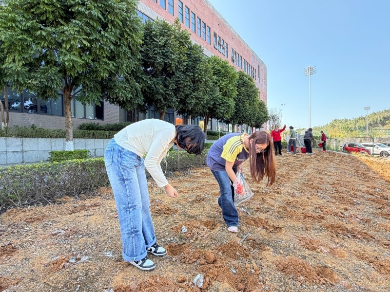 在分组实践环节,四支志愿队伍分工明确、配合默契,挖坑、撒种、覆土、浇水,各个环节衔接顺畅,大家以饱满的热情投入劳作。经过大家的齐心协力,500个种植点位全部完成播种,种植覆盖面积约160平方米,一颗颗向日葵种子在校园的泥土中落地,孕育着春日的希望。
