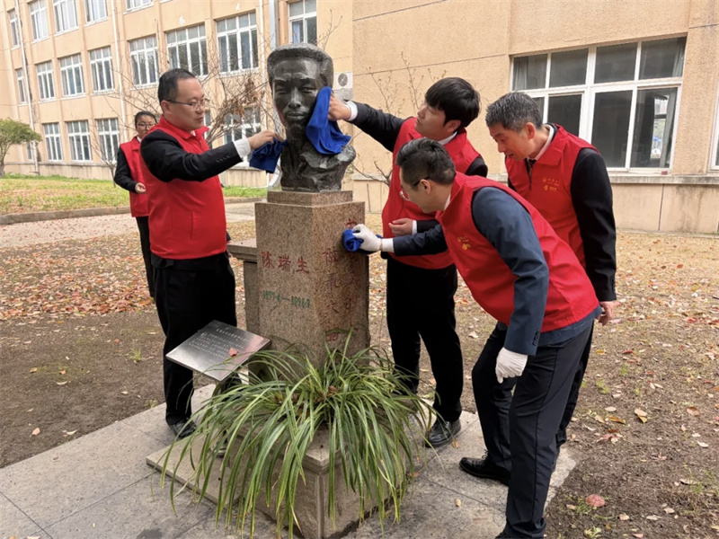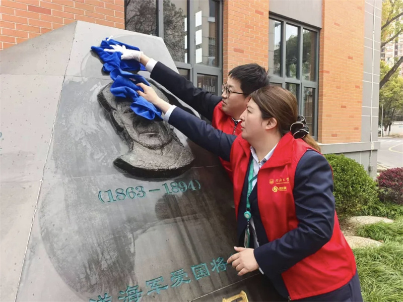 春风拂松柏,清明寄哀思。为弘扬同济精神,深化劳动教育,3月31日,在同济大学后勤管理与保障处的工作指导下,同济大学沪西校区开展了“同勉功勋,济忆先贤”劳动育人实践活动。后勤处瞿老师、学生代表以及东吴服务产业集团驻沪西、张江、四平东区项目部的党员和管理员共同参加,以清扫、描红、献花之仪,追忆先贤事迹,传承红色基因。