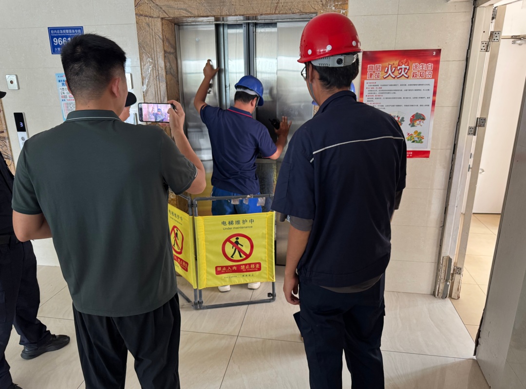 楼管接警后立即核实信息,先通知楼宇安保值班赶赴现场,再同步联络物业工程与电梯维保人员到场处置。保安快速抵达后第一时间安抚轿厢内人员。