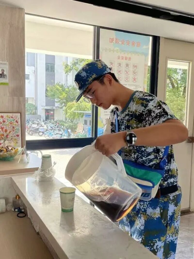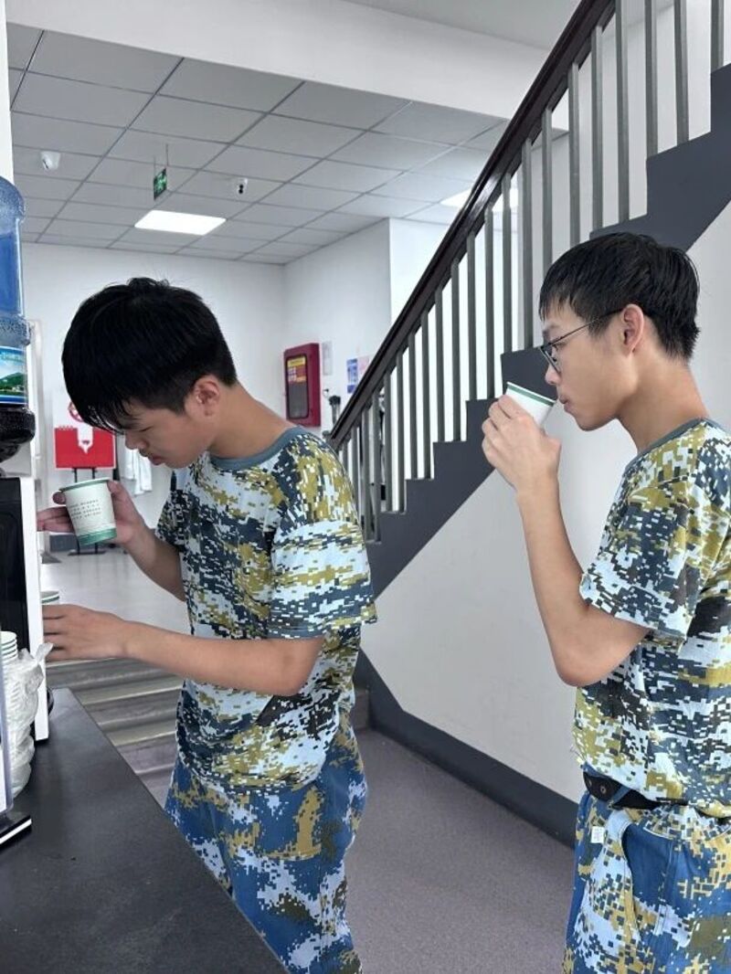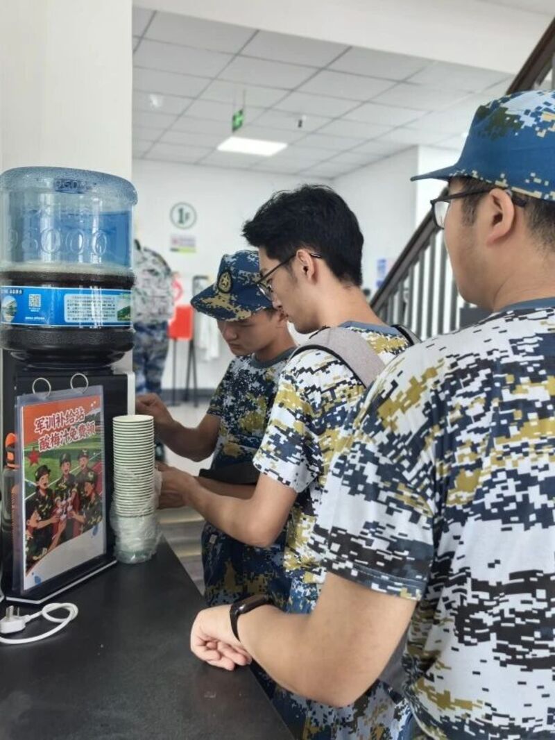 新生军训期间,考虑到天气炎热,为同学们提供免费酸梅汤和小零食。