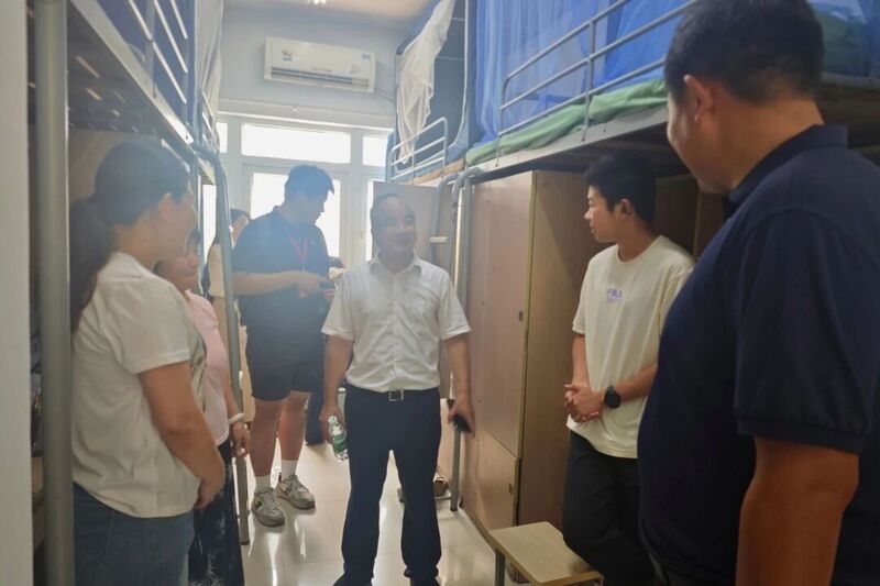 校领导来到学生宿舍迎新现场,详细了解新生报到情况及各项迎新保障工作,与学生、家长亲切交流,并鼓励新生敢想敢做、勇于创新,努力绘就精彩的青春篇章。