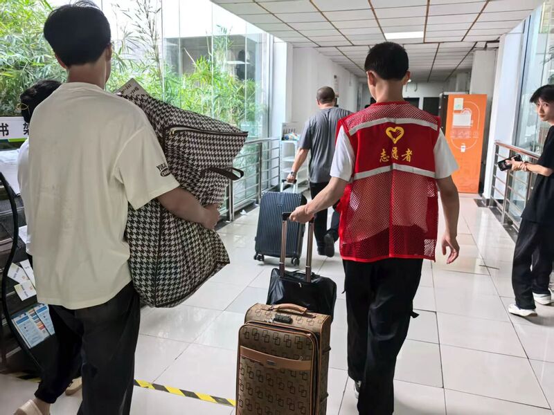 暖心服务:开学之际,暖心服务全面上线:不仅安排专属接驳车辆,主动帮新生接驳沉重行李,减轻报到奔波负担;志愿者也全程在岗,耐心为新生指引路线,并为家长清晰指明卫生间方向;同时还贴心设置家长休息区,让陪同的家长在等待时能安心休憩。