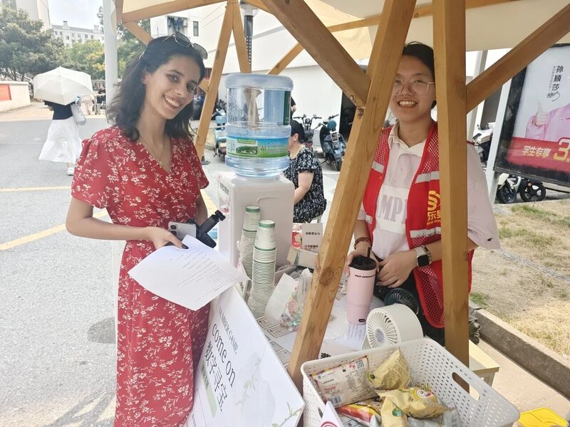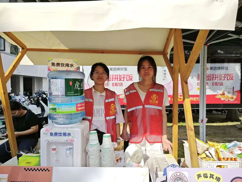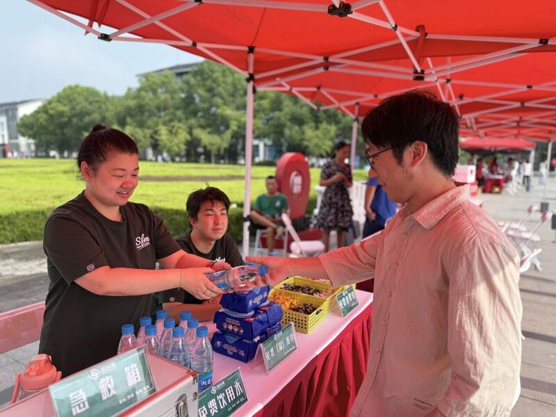 准备茶歇:考虑到近日天气炎热,新生们搬运行李颇为辛苦,精心为刚刚踏入校园的新生和家长们准备了茶歇,让大家能稍作休憩、补充能量。