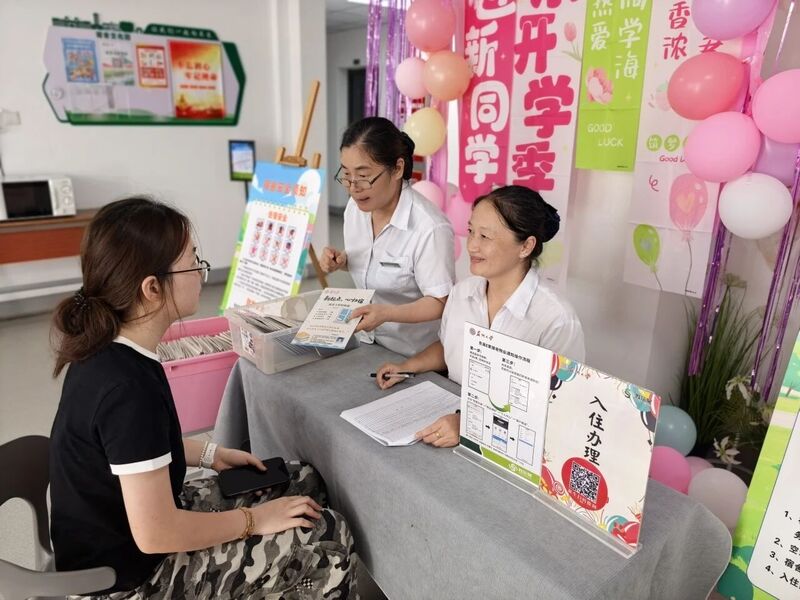 办理入住:开学办理入住现场热闹有序。志愿者们面带微笑,引导新生至对应宿舍楼。值班员认真核对信息、发放钥匙,耐心解答新生的疑问。