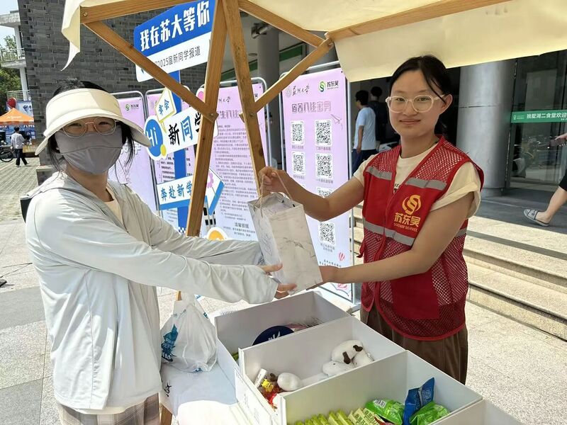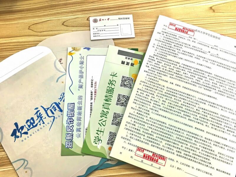 苏州大学独墅湖一期宿舍迎新正热。活动驿站里,新生能免费领“惊喜盲盒”,里面有定制精美生活礼盒、钢笔书签、chiikawa卡套等不同等级奖品及校园文创,让新生收获入学首份惊喜。
