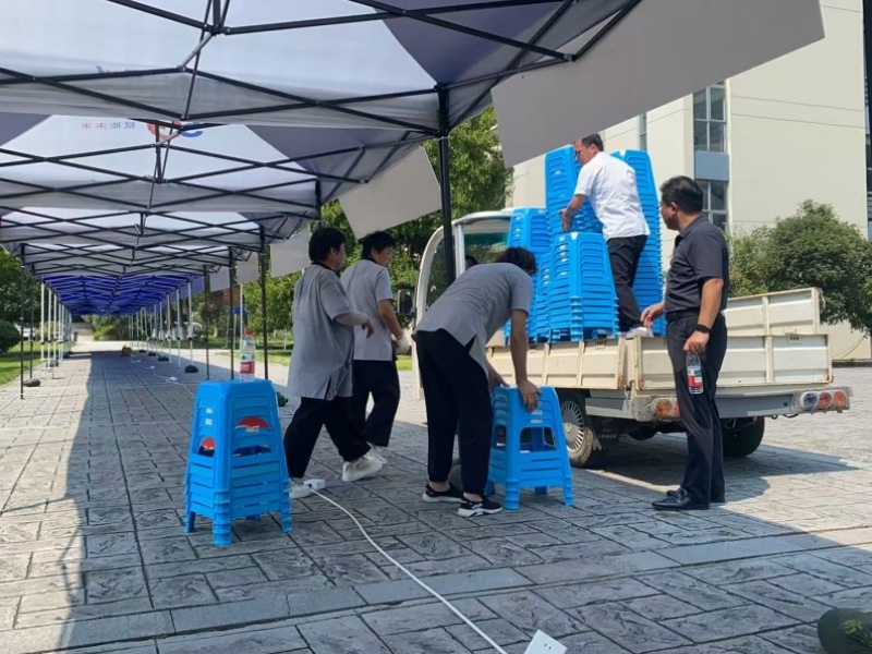 45顶帐篷、500套桌椅,从搬运到搭建,我们细心安排,如约而至。
