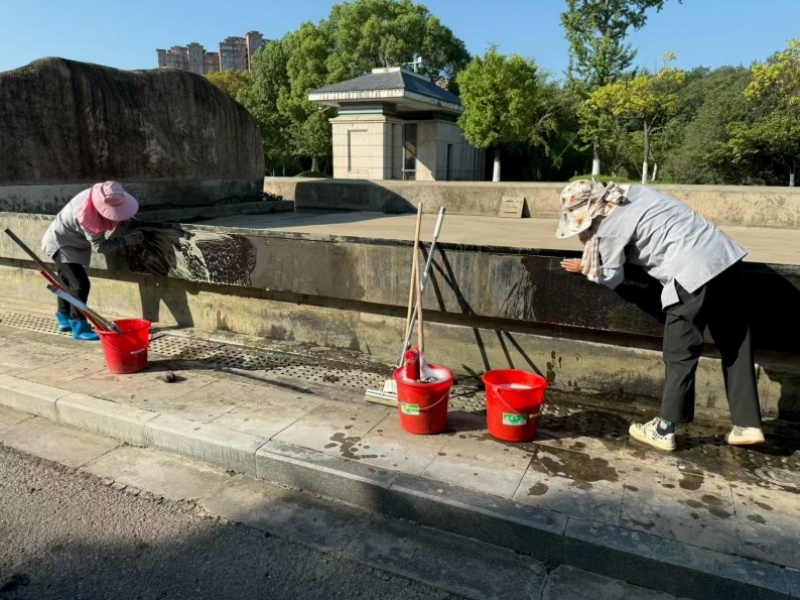 60人次轮番接力,刷子、水枪、甚至双手全用上。