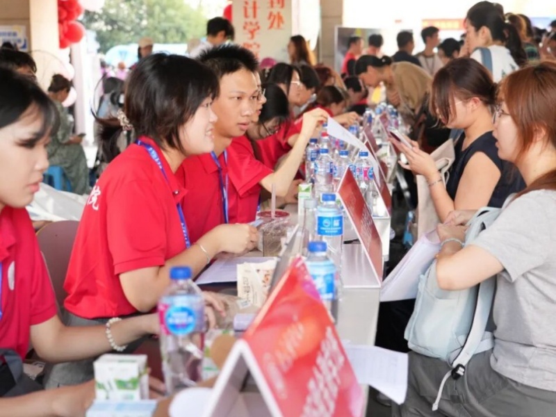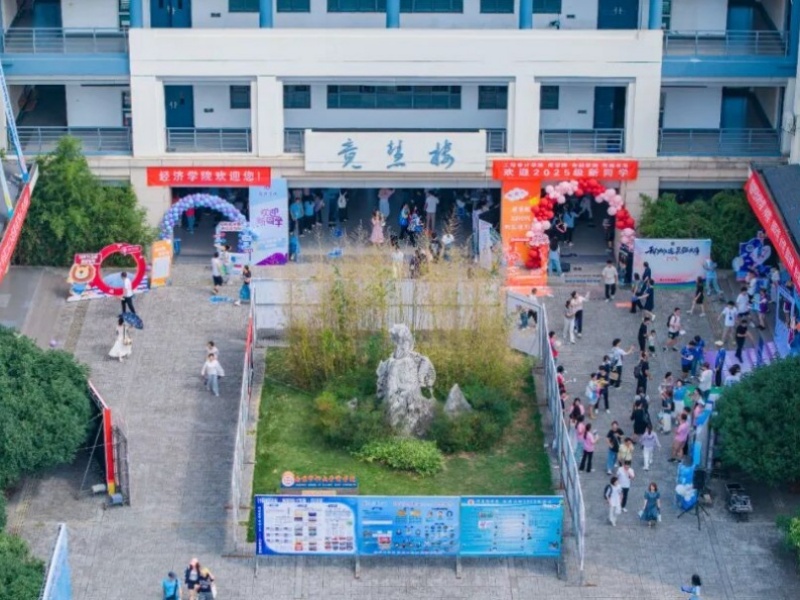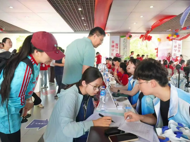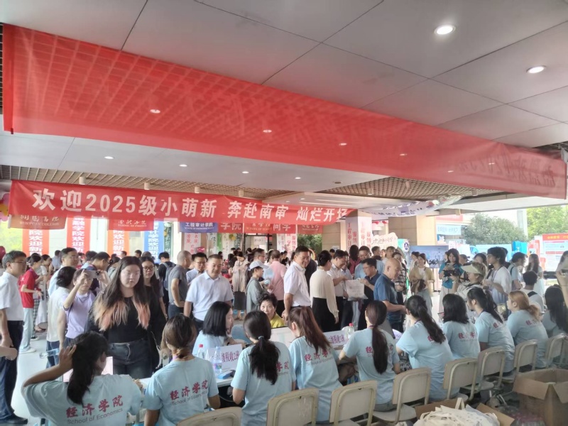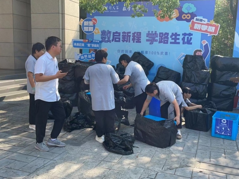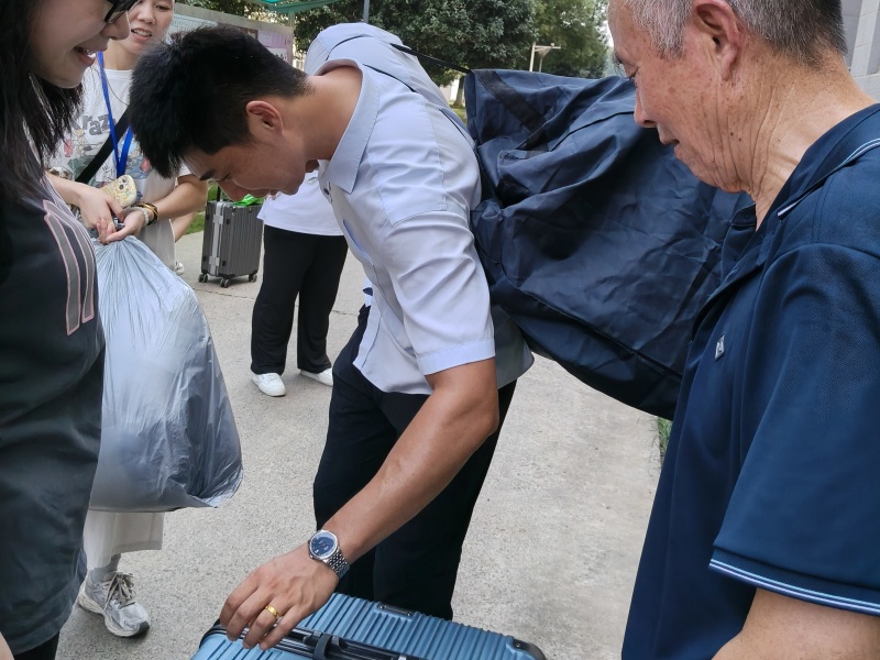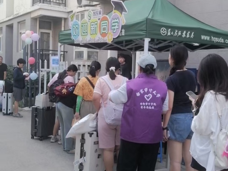 各迎新现场早已挤满了学生和家长,行李箱的滚轮声、欢快的招呼声,交织成一首热闹的晨曲。