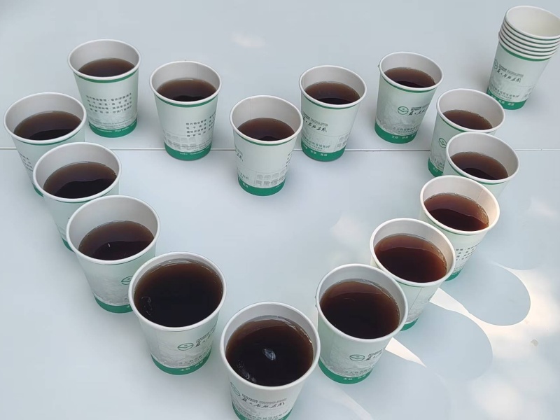 服务台前,我们的伙伴以纸杯为笔,用心摆出了“爱心”的模样,原来这酸梅汤里,藏着一份用温情调制的“告白”。
