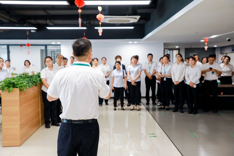集团董事长、总裁韦曙和,集团党委书记、副总裁陈爱萍,集团副总裁、东吴服务总经理石永,集团领导、东吴服务副总经理张洪、胡光娇、毛波杰,公司在苏总助及以上领导刘维净、李普育、林苏珍、王建峰、周长、韦昀志、徐建伟、崔文艳、唐有伟、仲浩、高春燕以及在苏各条线副总监、相关单位负责人、相关业态项目负责人、安全员共计250余人通过“线上+线下”形式参会。