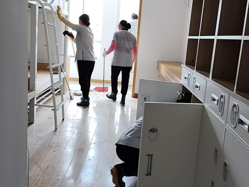 “犄角旮旯都得亮堂堂,要让小萌新推开门就哇塞!” 抱着这股劲,公寓改造一收尾,项目组的 “清洁天团” 立刻火速集结。面对满是灰尘杂物的宿舍,楼宇站长带着保洁员们,抄起扫帚、拖把、清洁剂,化身 “除尘卫士”,一间间、一层层啃下“大扫除硬骨头,把“亮堂堂”的目标落到每处细节里。