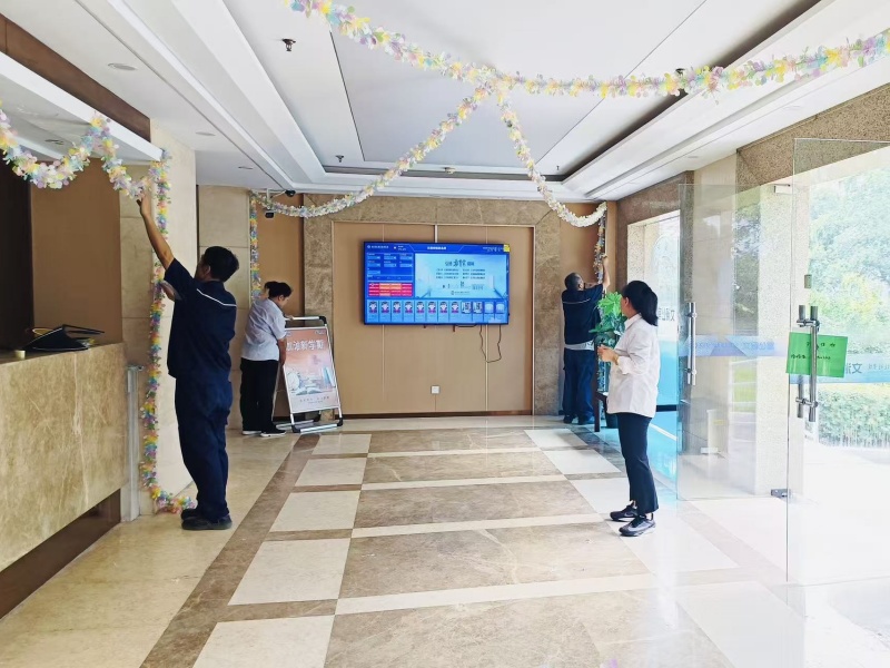 不止于净,更要氛围感拉满!项目部的“装饰小能手”出手,宿舍大厅被装扮得氛围感十足。