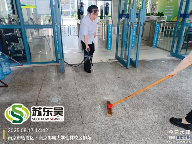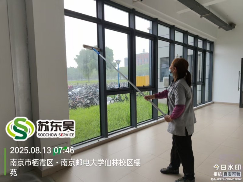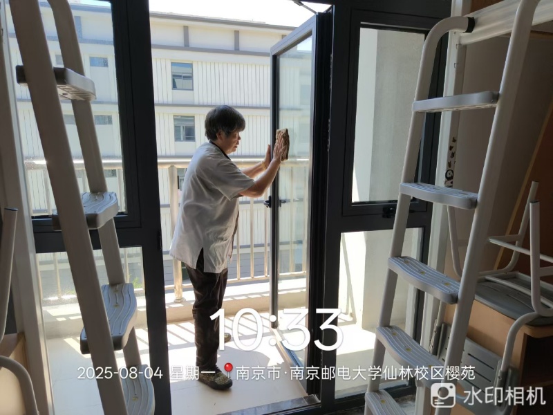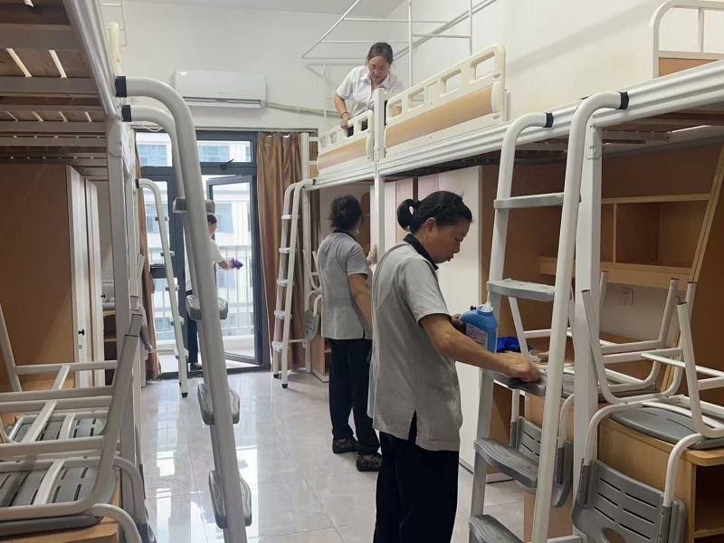 在宿舍环境优化上,项目部开展了全面的卫生保洁工作,从公共走廊、楼梯间到宿舍内部的门窗、地面、家具等,进行无死角清洁与整理,让每一间宿舍都焕然一新,以整洁明亮的环境迎接新生到来。