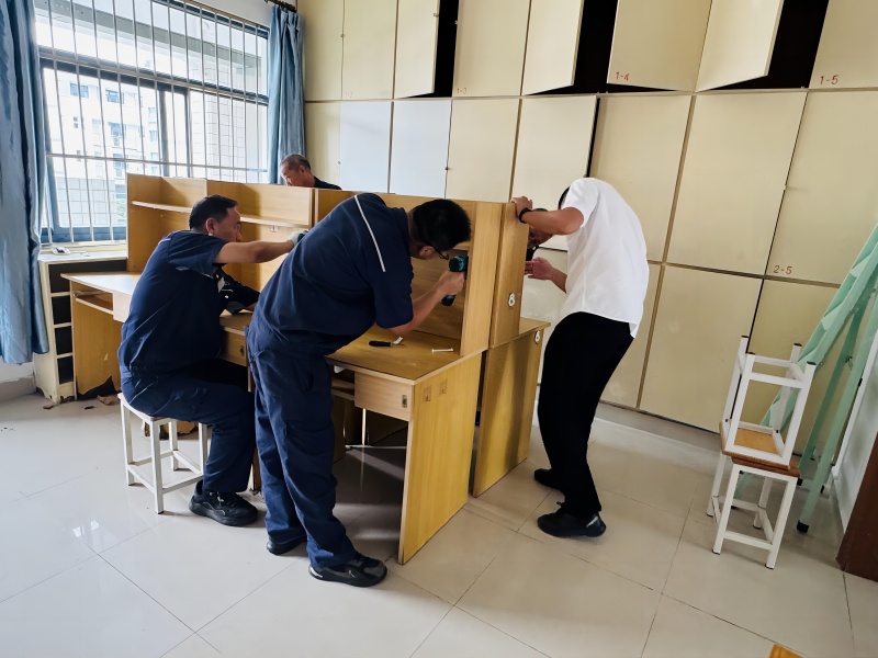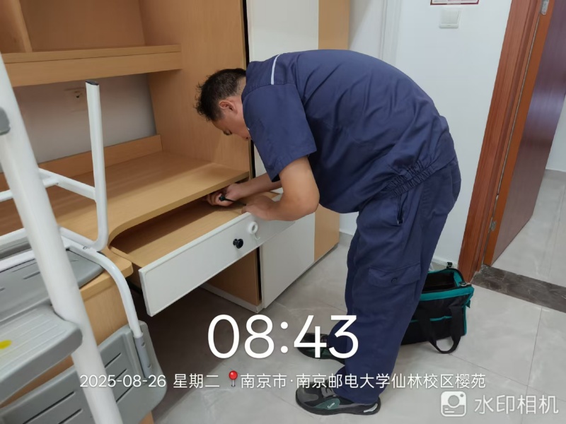 为筑牢新生宿舍安全防线,维修人员开展了细致的排查维修工作。他们聚焦宿舍安全核心,对水电线路、门窗锁具、床架桌椅等设施逐一检查,精准排查线路老化、锁具失灵、家具松动等隐患。发现问题后,维修人员迅速处置,及时修复损,确保各类设施恢复安全使用状态,确保新生有良好的住宿体验。