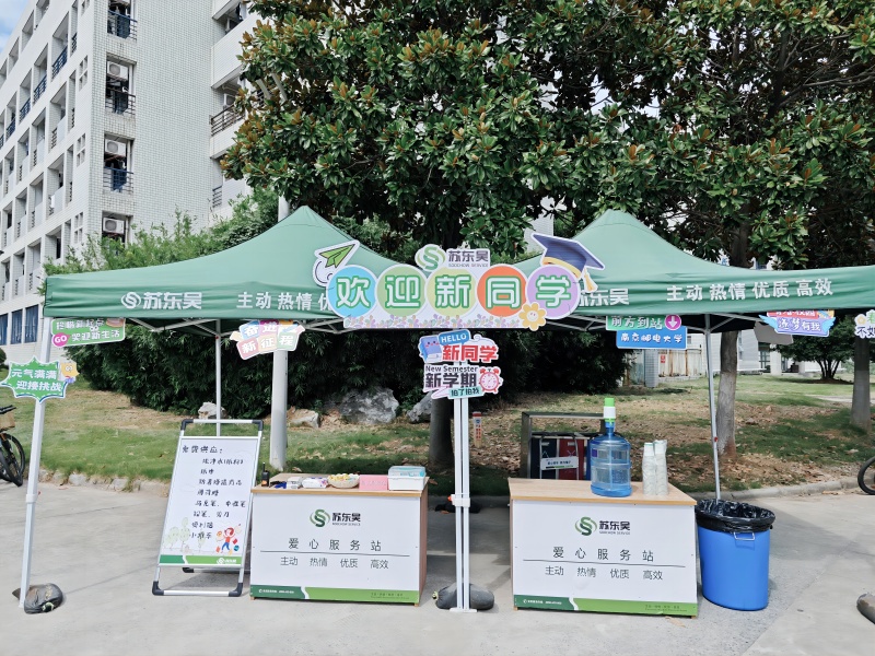 9月12日下午,南京邮电大学迎来了五湖四海的莘莘学子。为了保障迎新工作的高效、有序的进行,南邮仙林公寓项目提前准备迎新工作。南邮仙林公寓项目工作人员提前布置爱心服务点、家长休息区、志愿者休息区,在休息区为同学及家长提供免费饮用水、防暑降温药品、糖果、马克笔、便利贴等,迎接新生们的到来,同时工作人员为来往的新生指路答疑。