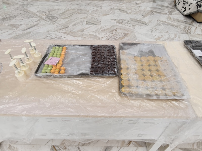 活动现场提前布置就绪,面团、馅料与各式模具整齐陈列,黄油的清香在空气中悄然弥漫,浓厚的节日氛围扑面而来。为让大家吃得放心、做得开心,项目工作人员提前精挑细选,不仅准备了多种口味的馅料,更严格把控食材健康,从源头保障手作品质。