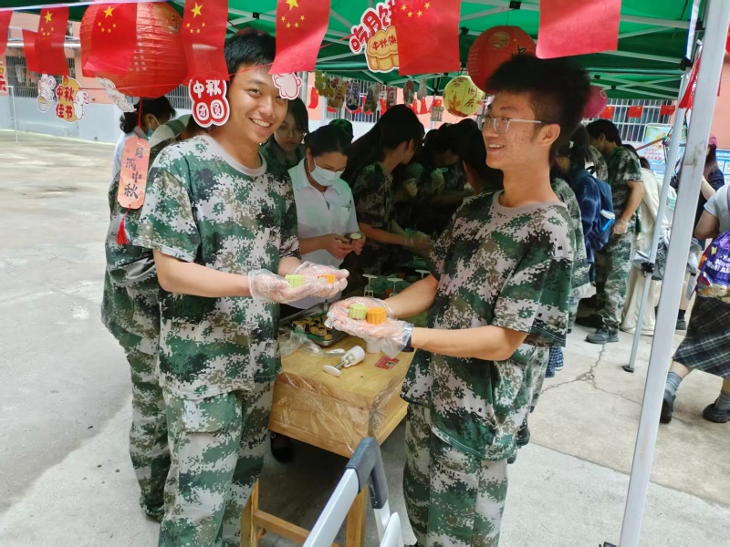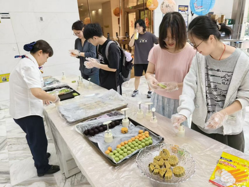 制作之余,阿姨们与同学们闲话家常,从假期安排聊到家乡中秋习俗,温馨的对话与爽朗的笑声交织,让整个现场暖意融融,也让双节的喜悦多了一份别样的温情。