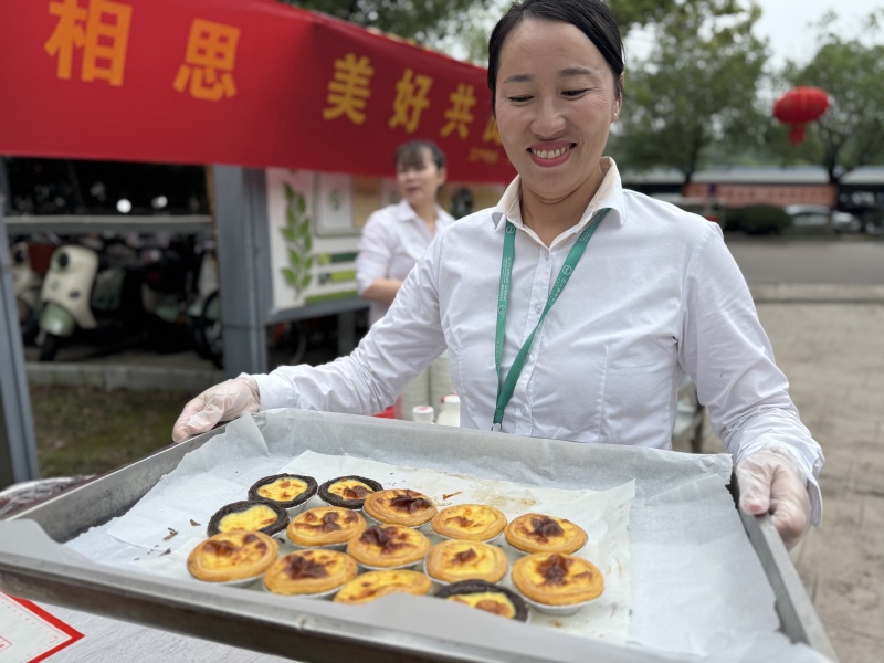 游戏的欢腾过后,项目部精心准备的美食区更添温馨。精致的餐台上,各色小食琳琅满目,散发着诱人的香气:清甜的牛奶烧仙草,铺满了红豆、芋圆和芒果;金黄诱人的蛋挞,外皮酥脆如鳞,内馅嫩滑如布丁,咬下时的 “咔嚓” 声与浓郁奶香交织,让人回味无穷;中秋专属的冰皮月饼更是颜值与口感并存,不同颜色的外皮包裹着红豆、芋泥等多种内馅,软糯香甜,一口便尝出团圆的滋味;还有新鲜制作的手工寿司,米饭的香、海苔的咸与鸡肉的嫩完美融合,每一口都是对味蕾的温柔犒赏。来往的人们手中捧着美食,脸上带着笑意,畅谈工作与生活,让彼此的心贴得更近。