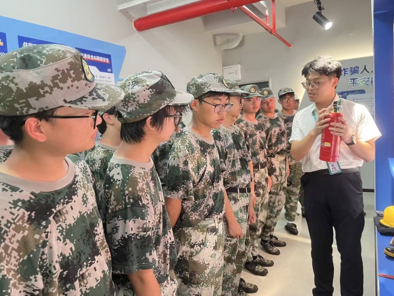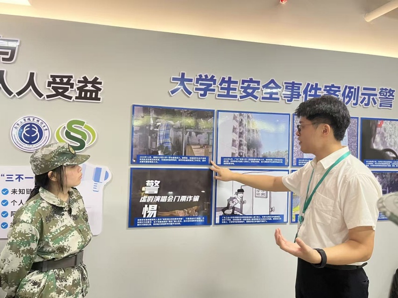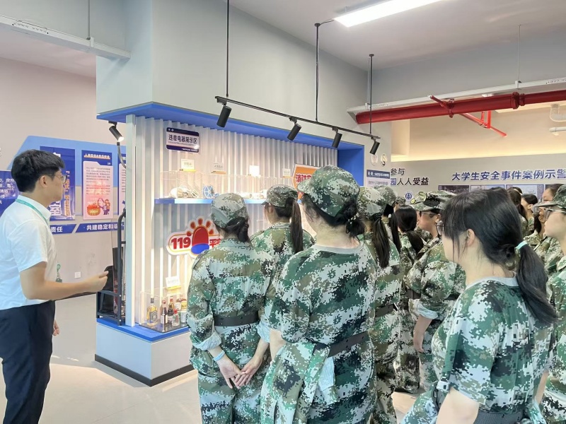 项目部高度重视,组建主要管理人员成立宣讲团队,在军训期间历时一周90多个批次,共接待新生5000余名,组织学生对“一站式”学生社区安全教育室和6S内务示范室进行参观学习。