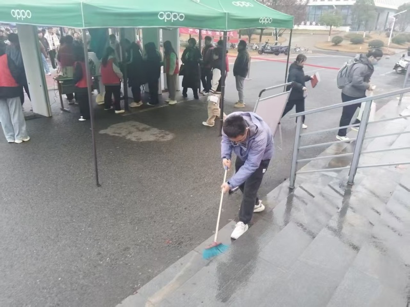 围绕考场环境优化与设施保障核心任务,项目部组织全员对教学楼 126 个考场的照明、饮水机、空调等设施设备开展逐一排查检修,确保各类设备运行正常。同时,对考场及周边区域进行深度保洁,不留一处卫生死角;同步规范考场周边环境秩序,营造安静有序的备考氛围。此外,项目部提前备齐备足应急物资,制定交通疏导、突发情况处置等专项应急预案,进一步明确责任分工与应急响应流程。一系列扎实举措,全面打造出整洁、安静、舒适的应考空间,助力学子们心无旁骛奔赴考场、从容应战。