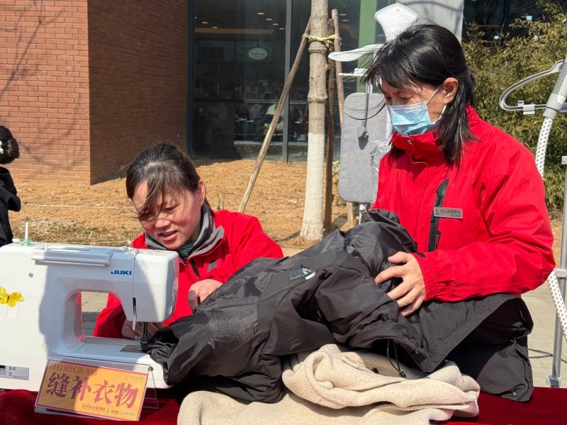缝补衣物,虽是一件看似平凡的小事,却饱含着深深的关怀与温暖。北京化工大学项目团队与苏东吴充分考虑到学生们在学习生活中可能遇到的衣物破损却不知如何处理的困扰,共同组织了爱心缝补活动。活动现场,我们的值班阿姨耐心细致地为每一位有需求的学生修补衣物。无论是衣服上的小破洞,还是裤子的开线,他们都能巧妙地修复如初。