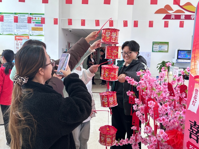 活动现场,师生们亲手制作花灯的场景尤为动人。从折叠骨架到粘贴彩纸,从穿绳挂穗到点亮灯芯,每一道工序都凝聚着专注与创意。一盏盏独具匠心的花灯在手中诞生,不仅承载着对传统文化的传承,更寄托了“花灯映团圆”的美好期许。欢声笑语中,师生间的情谊与“家”的温暖悄然升温。