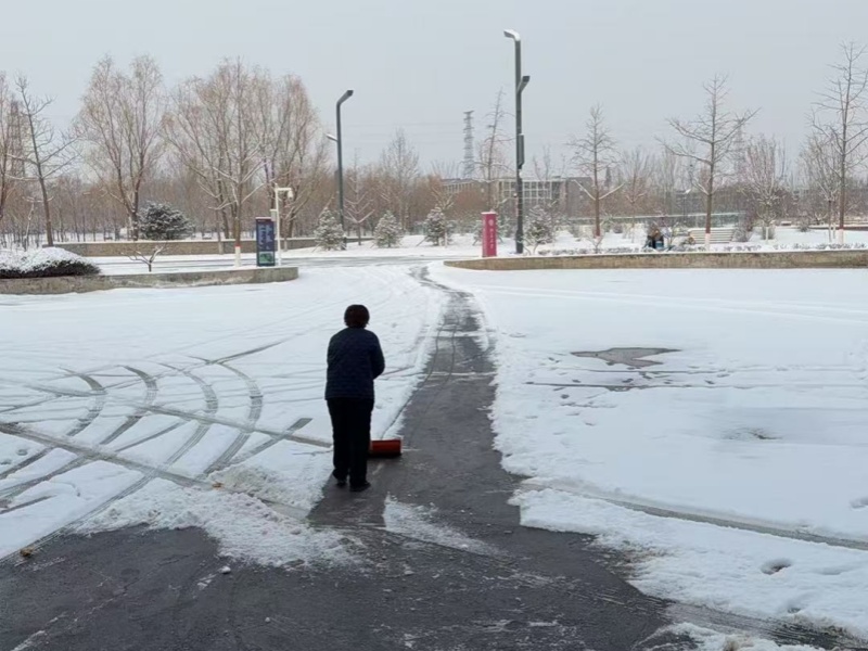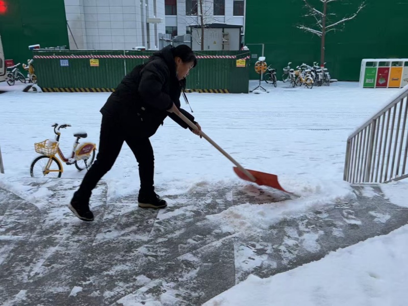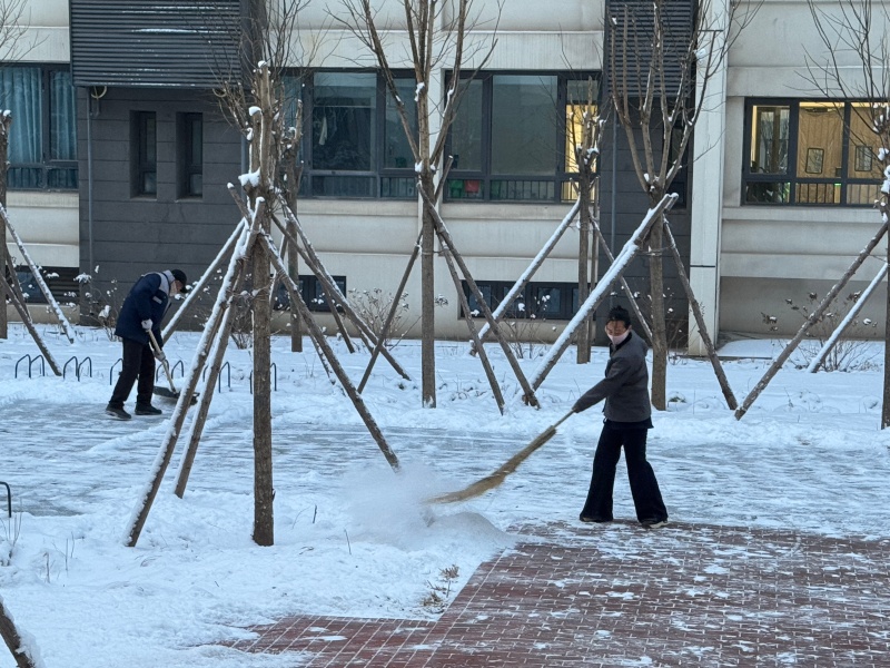 2026年1月,北京迎来首场降雪,纷扬的雪花在装点校园美景的同时,也给师生出行与教学秩序带来挑战。受昨日降雪影响,校园内多处路面出现积雪、部分区域结冰,教学楼台阶、无障碍通道等区域存在安全隐患,校园主干道、食堂周边等区域通行受阻。面对突发情况,苏东吴北大项目部第一时间启动应急预案,统筹调配人力物资,组织教职工志愿者与后勤团队开展全域除雪清障工作,以“人工+机械”协同作业模式筑牢安全防线。