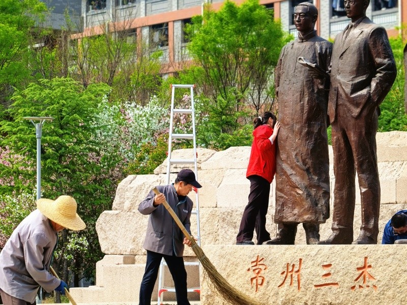 清明期间,为缅怀革命先烈、传承红色精神,东吴服务常州工学院项目组织党员与项目骨干,开展“常州三杰”雕像广场清扫志愿活动。