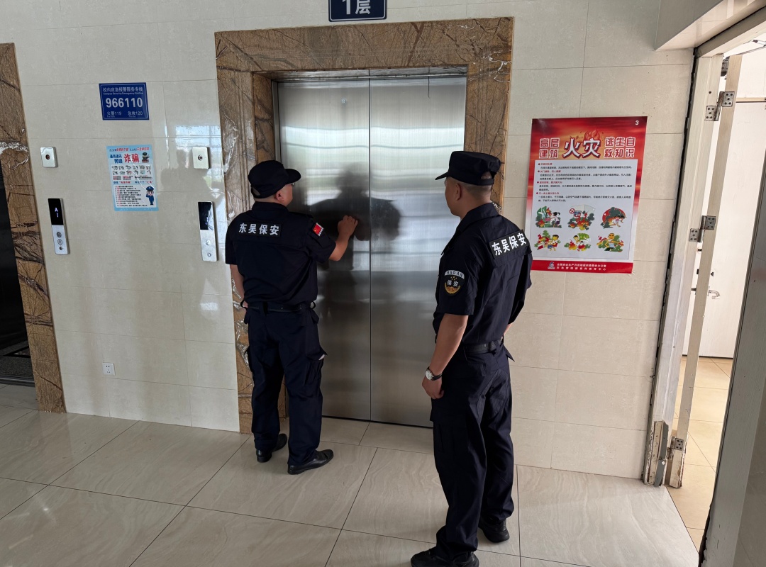 楼管接警后立即核实信息,先通知楼宇安保值班赶赴现场,再同步联络物业工程与电梯维保人员到场处置。保安快速抵达后第一时间安抚轿厢内人员。